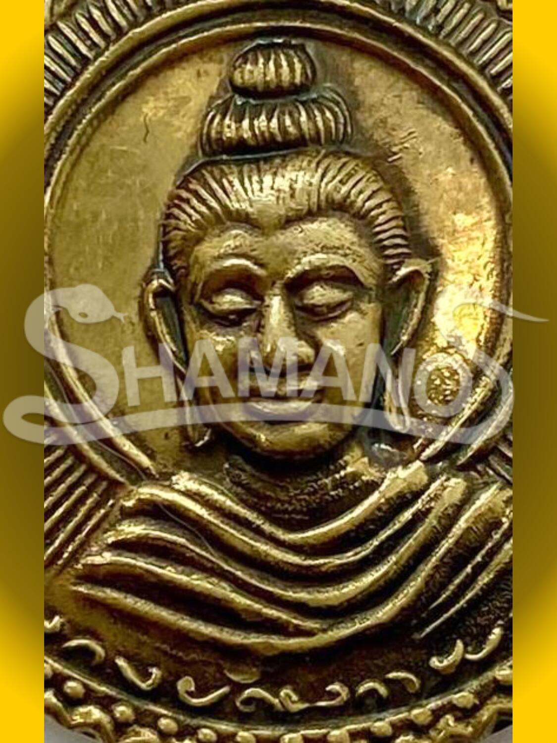 Questa medaglia è un amuleto in ottone e presenta sul fronte un'immagine del volto di Buddha che irradia serenità e pace. Sul retro dell'amuleto sono invece riprodotte alcune scene salienti della sua vita: nascita e giovinezza, rinuncia, meditazione e ricerca spirituale, insegnamento e raggiungimento dell'Illuminazione.