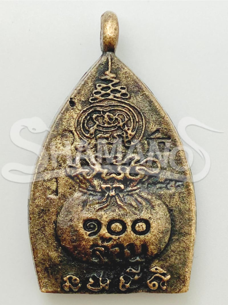 Infatti, sul fronte del talismano è presente l'immagine potente e protettiva del BUDDHA SOTHORN, in meditazione sul fiore di loto. Sul retro invece troviamo un chiaro richiamo alla RICCHEZZA e all'ABBONDANZA ECONOMICA, fortemente propiziate dalla presenza dei sacri Yant incisi.